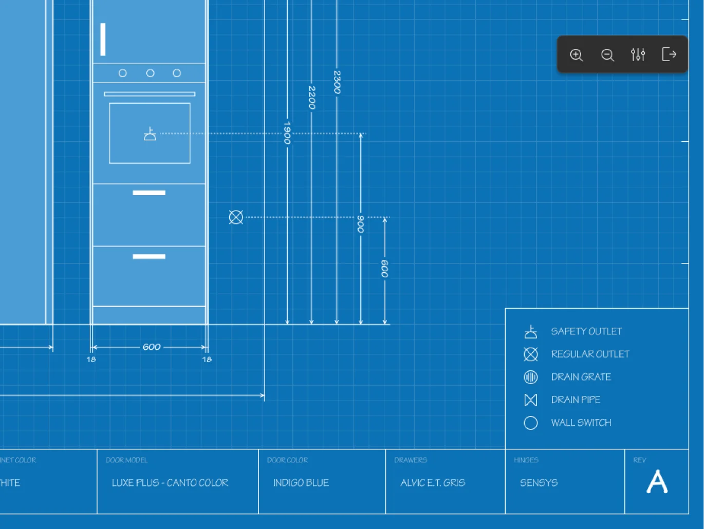 Through user research with kitchen designers and sales teams, I identified their main frustrations and designed features and interfaces to address these issues; including automating tedious manual tasks that previously required technical know-how, like configuring hardware specs based on design choices, or generating annotated floor plans.